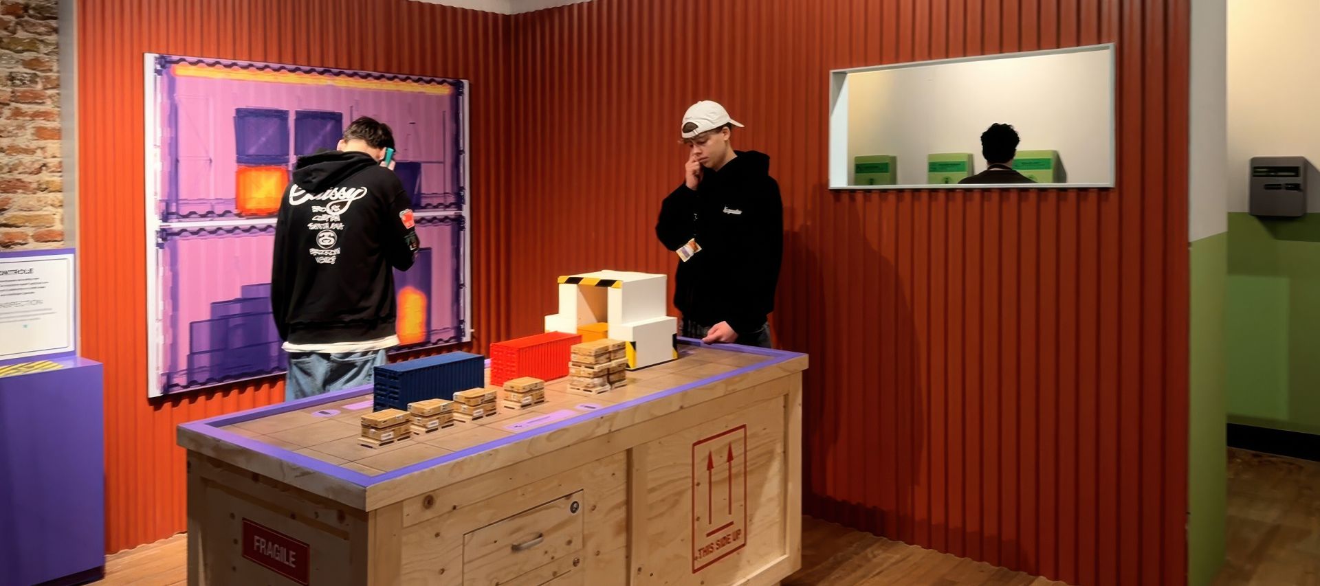 Synergique transformed the museum space into a working port with different departments: from container terminal to customs office. Students are assigned a role and get to work, until they are approached by a recruiter. These approaches start friendly but become increasingly threatening. The message is clear: you can only say no once. So: how strong are you?