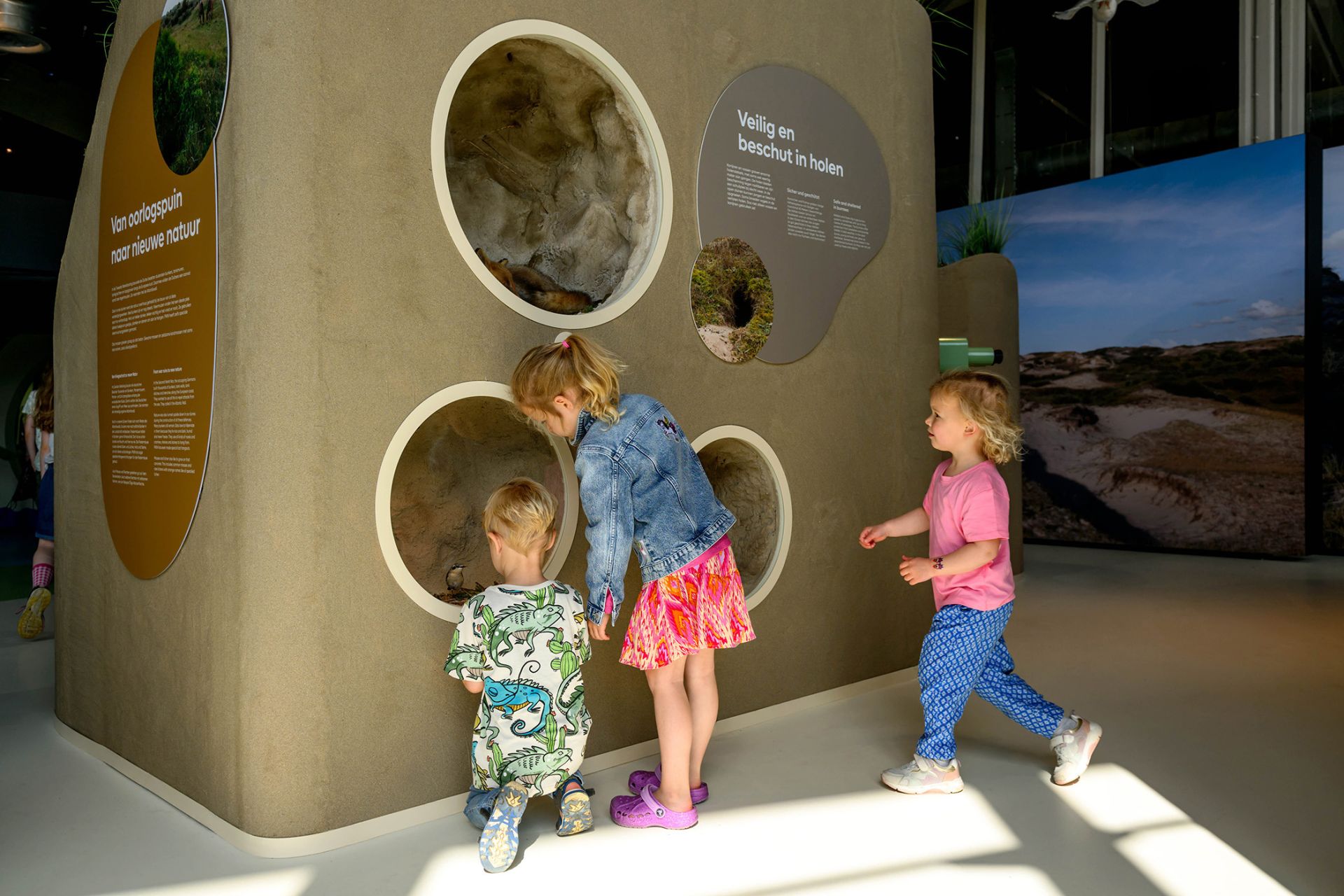 In het bezoekerscentrum worden al je zintuigen geprikkeld: beleef de geuren en nachtelijke geluiden van het bos, voel de wind bij de zeereep, aai de vacht van een hooglander of kijk door de ogen van een havik.