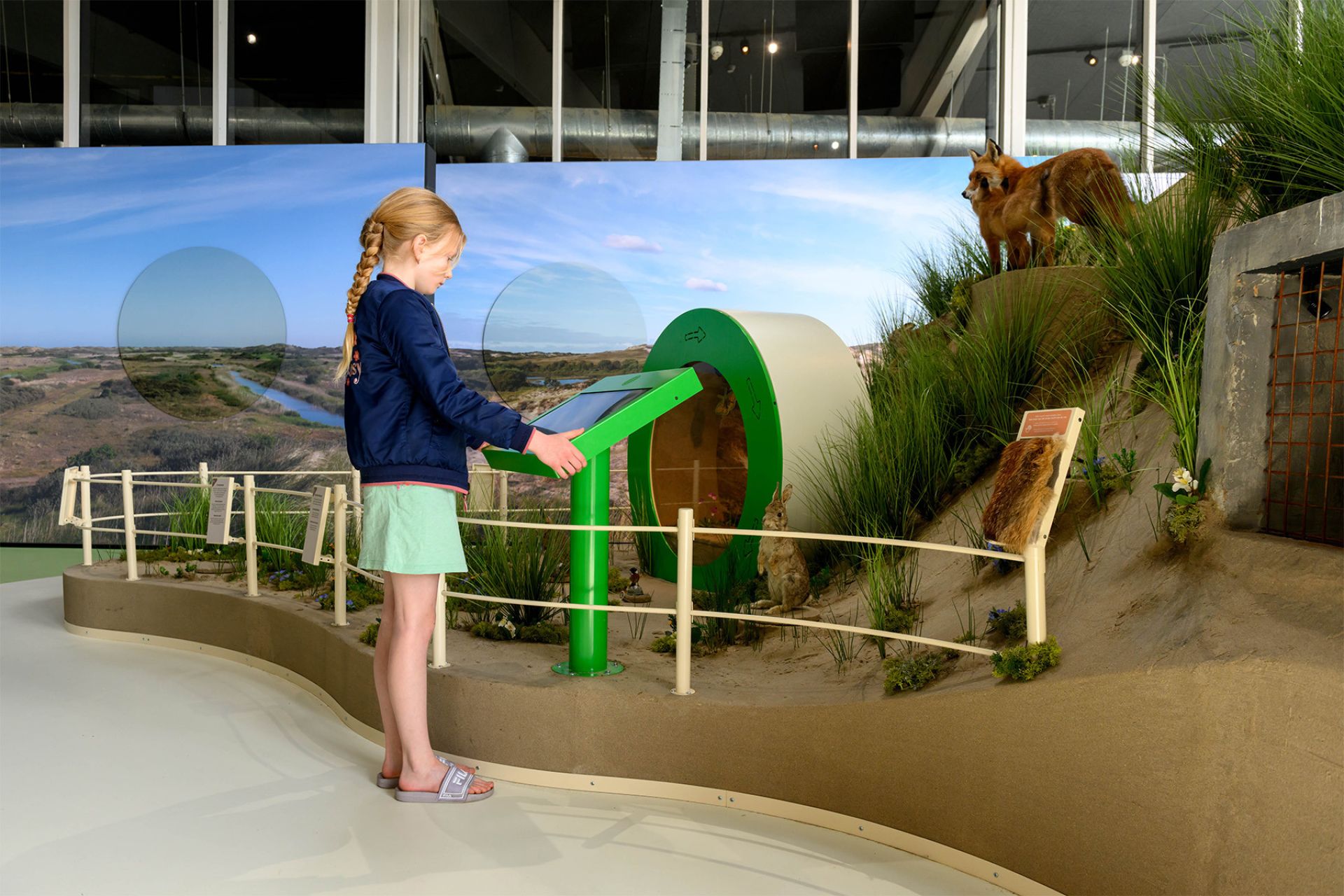 In het bezoekerscentrum kom je de zes landschapstypen tegen die ook in het Noord-Hollands Duinreservaat te vinden zijn. In elk landschapstype maken we kennis met een hoofdrolspeler die uitgelicht wordt in een ‘netwerkkader’ waarin het landschap in 3d is nagemaakt.