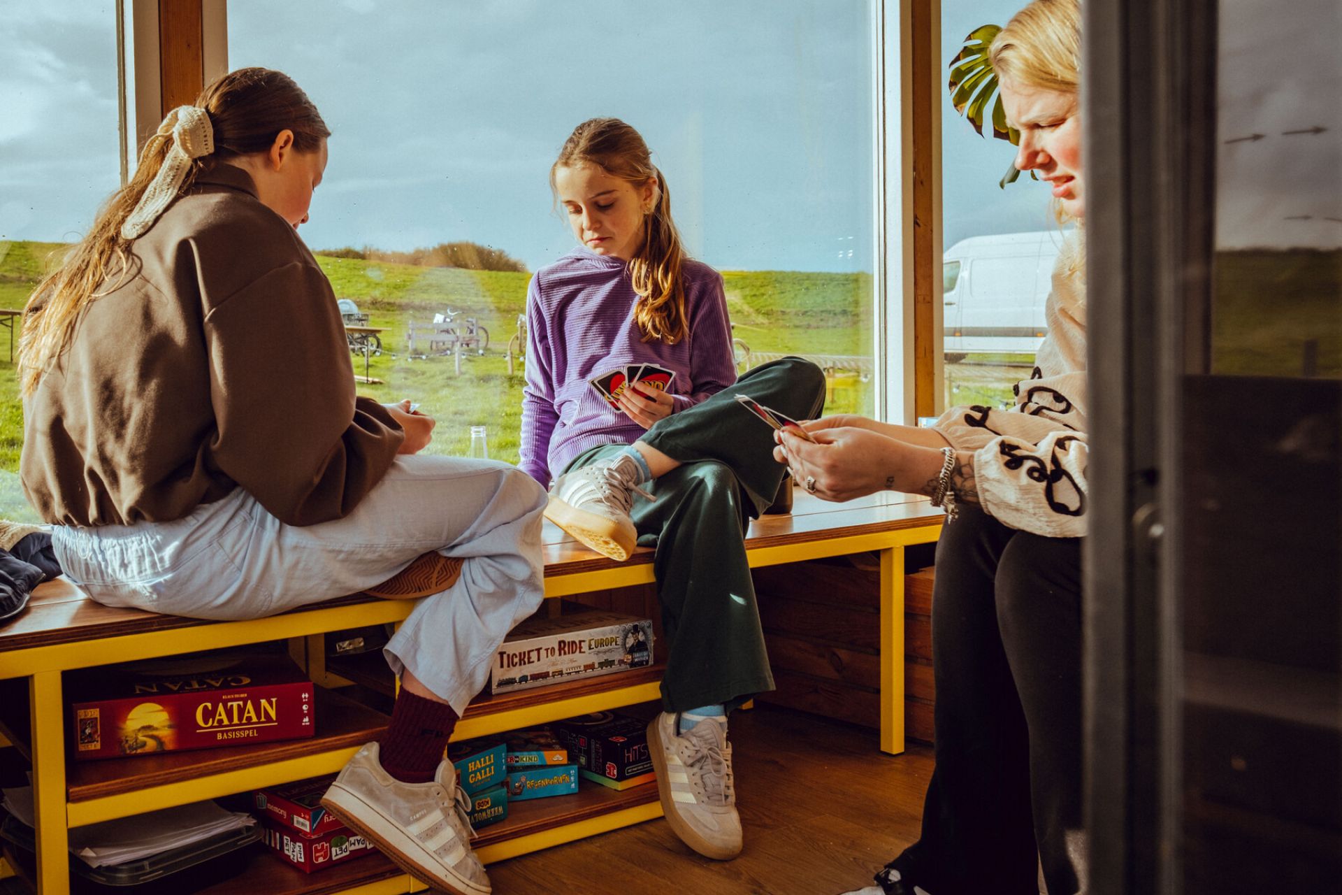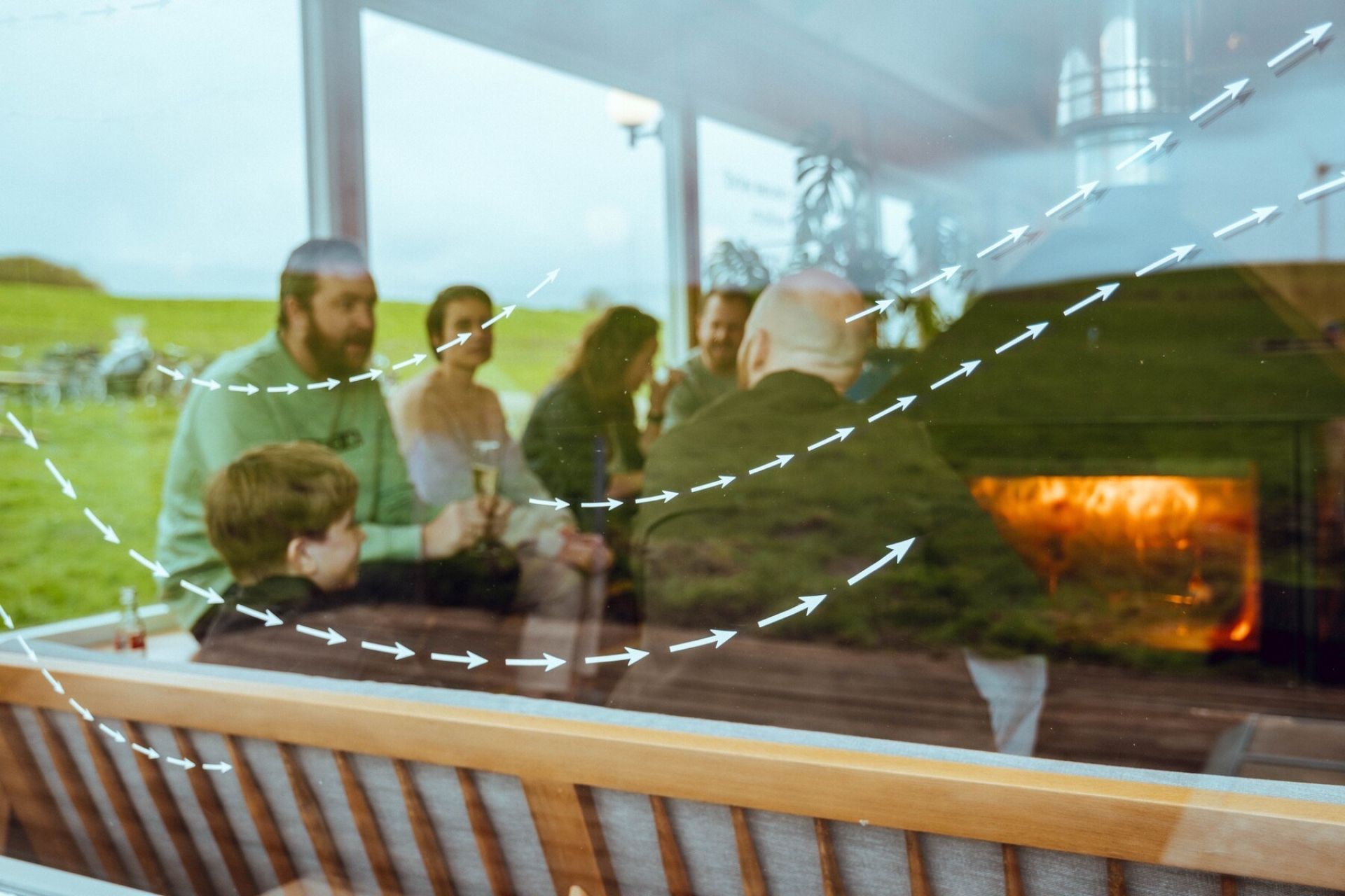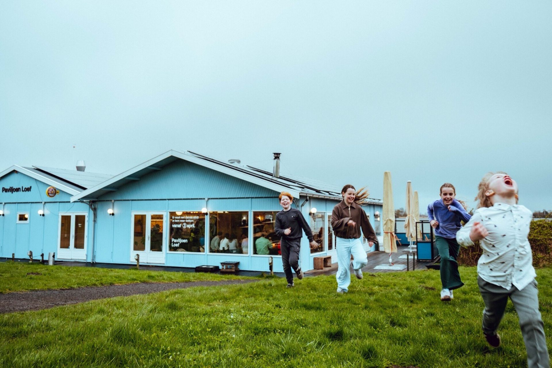 Het logo is geïnspireerd op de eenvoudige vlieger die je als kind opliet, gecombineerd met windkaarten en kompasroos. De visuele taal verwijst naar het open landschap en de wind die altijd door het paviljoen waait. Het lettertype Nudica, een eigentijds neo-grotesk, zorgt samen met het warme kleurenpalet van hemelblauw, donkerbruin en signaalrood voor een herkenbare, uitnodigende sfeer.