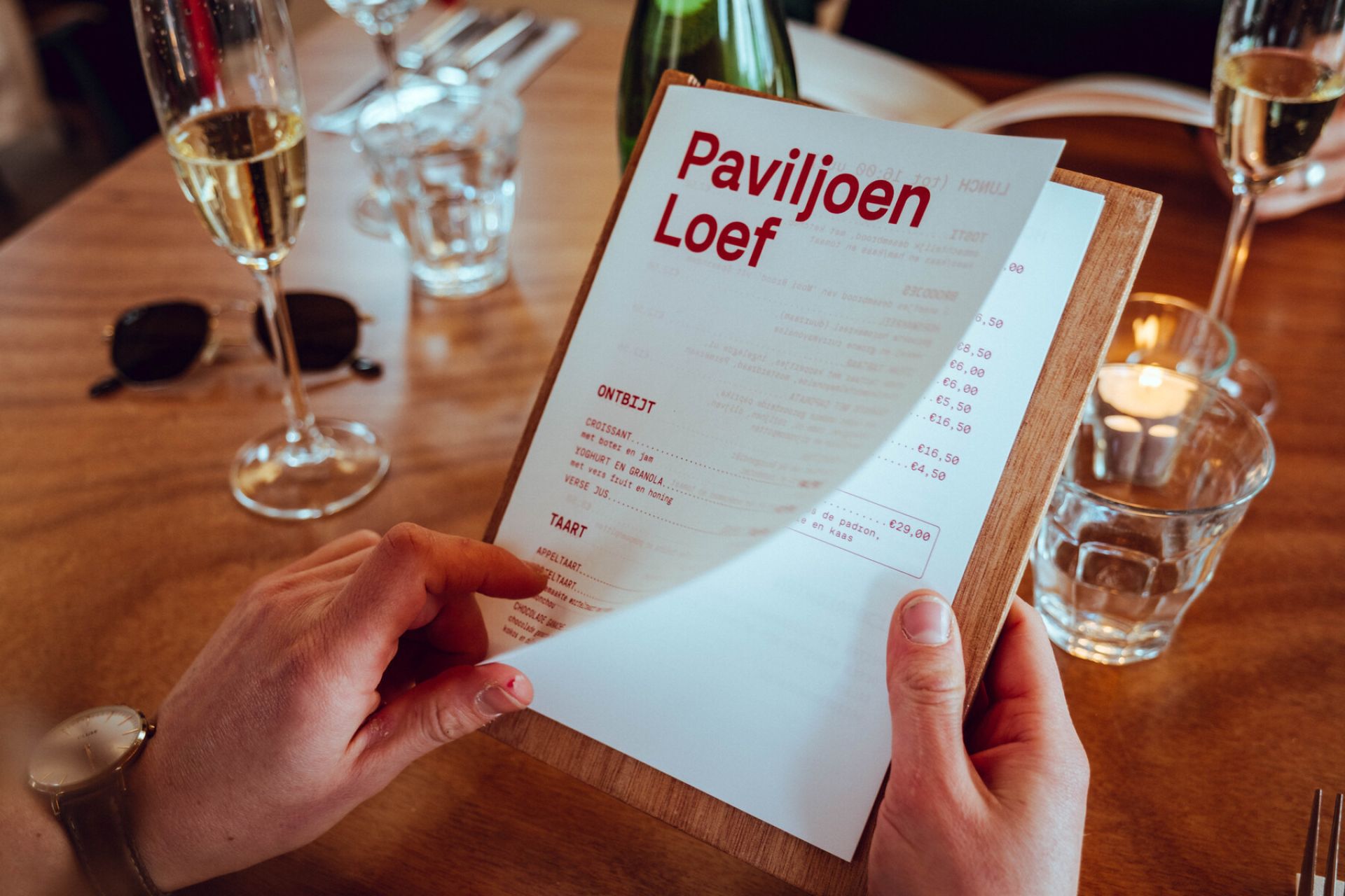Paviljoen Loef is een restaurant, bar en feestlocatie aan het water in Haarlem. Het paviljoen opende in april 2026 zijn deuren met een volledig nieuwe identiteit. Synergique ontwierp de huisstijl, alle grafische toepassingen, de routing en inrichting.