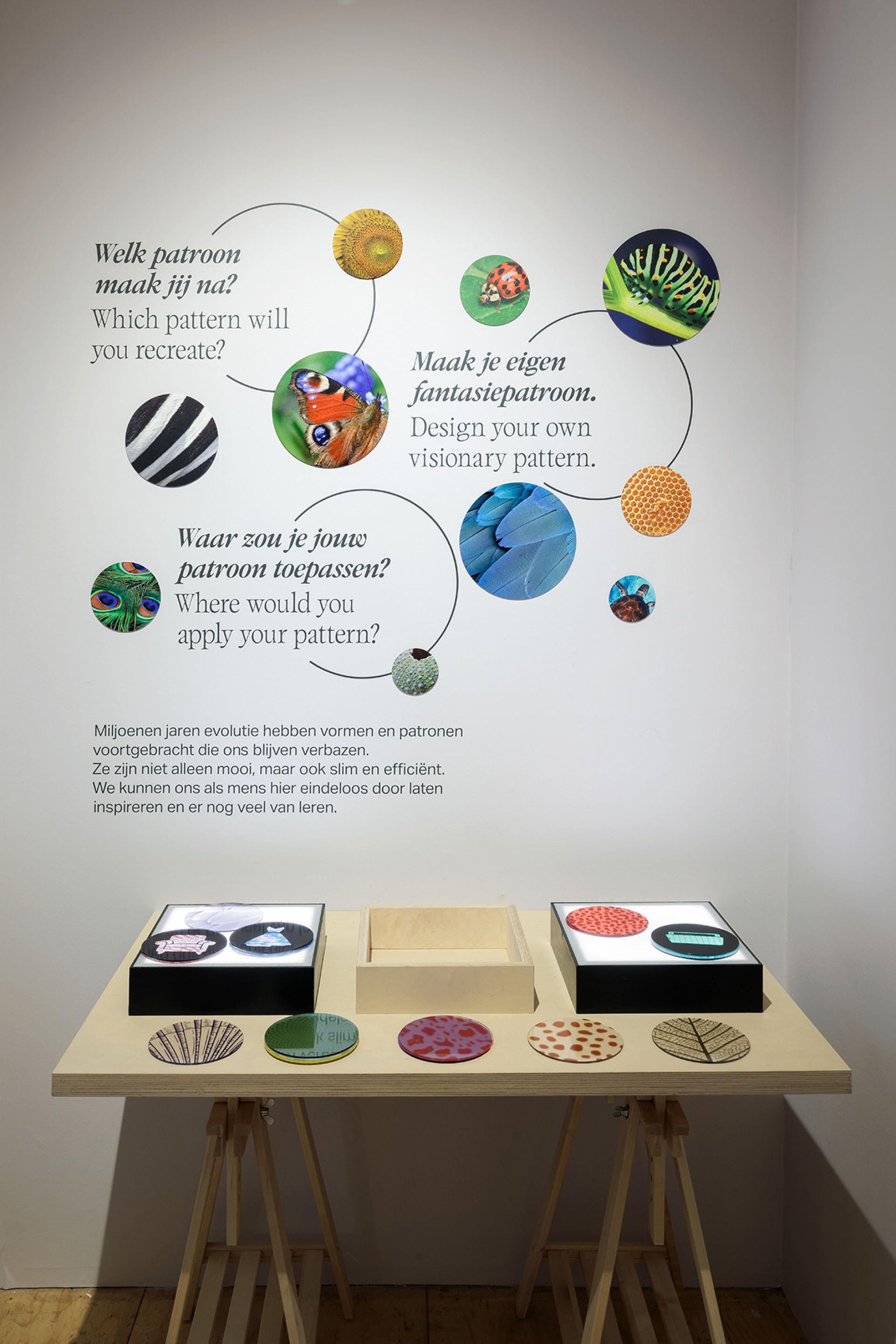 Ontdek de geheimen achter de patronen die je overal in de natuur tegenkomt. We nemen bezoekers mee in een inspirerende ruimte waarin ze ontdekken dat patronen verschillende functies vervullen: verleiden, camoufleren, verstevigen of soms waarschuwen. Duidelijk wordt dat het nooit willekeurige versieringen zijn, maar slimme overlevingsstrategieën.