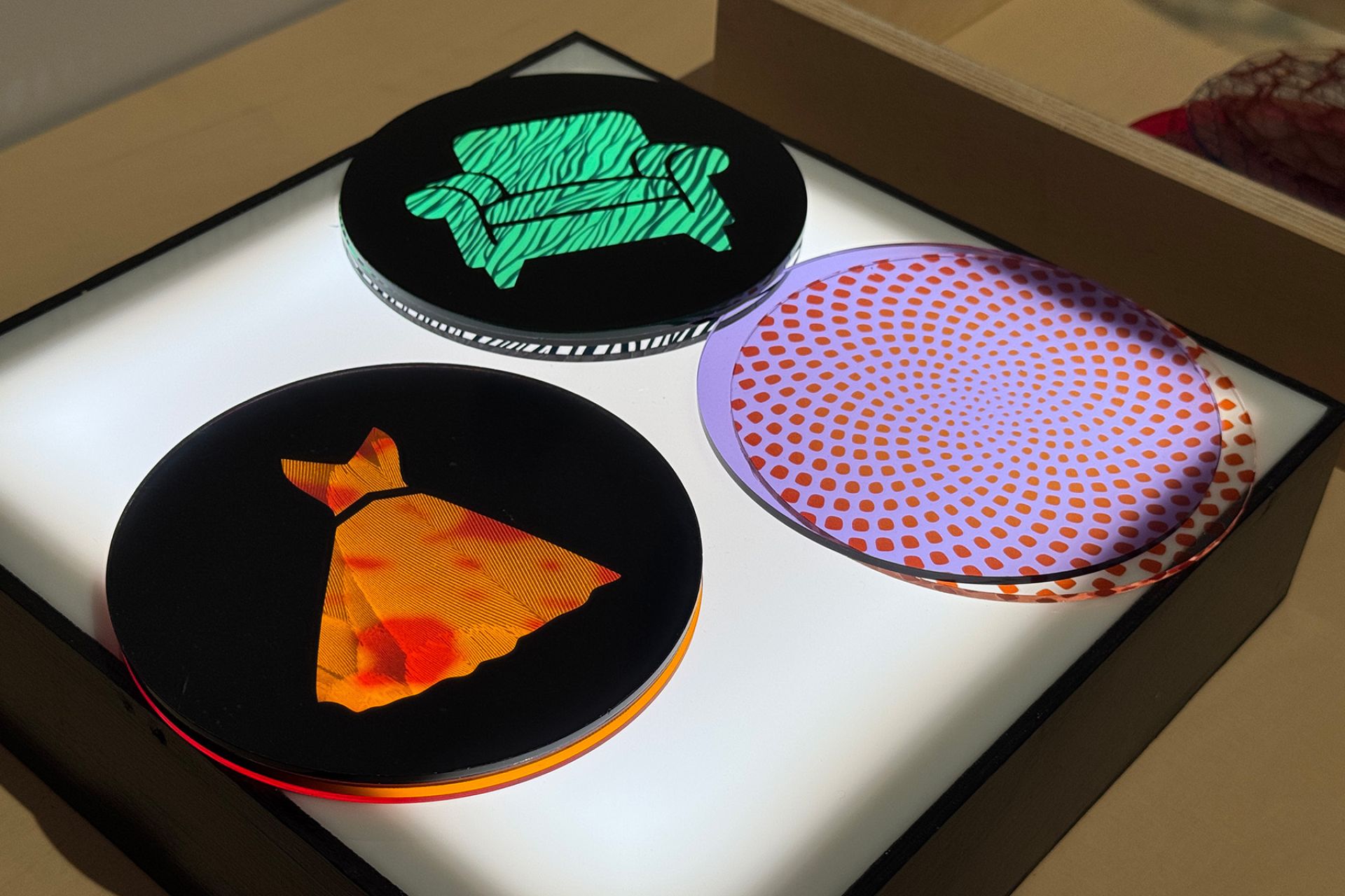 Voor elke functie is een herkenbaar grafisch patroon ontworpen dat de ruimte indeelt: van honingraatstructuren bij efficiëntie tot zebra-strepen bij camouflage. Deze patronen lopen over houten panelen en wanden, waarbij we ook de patronen in het hout benadrukken.