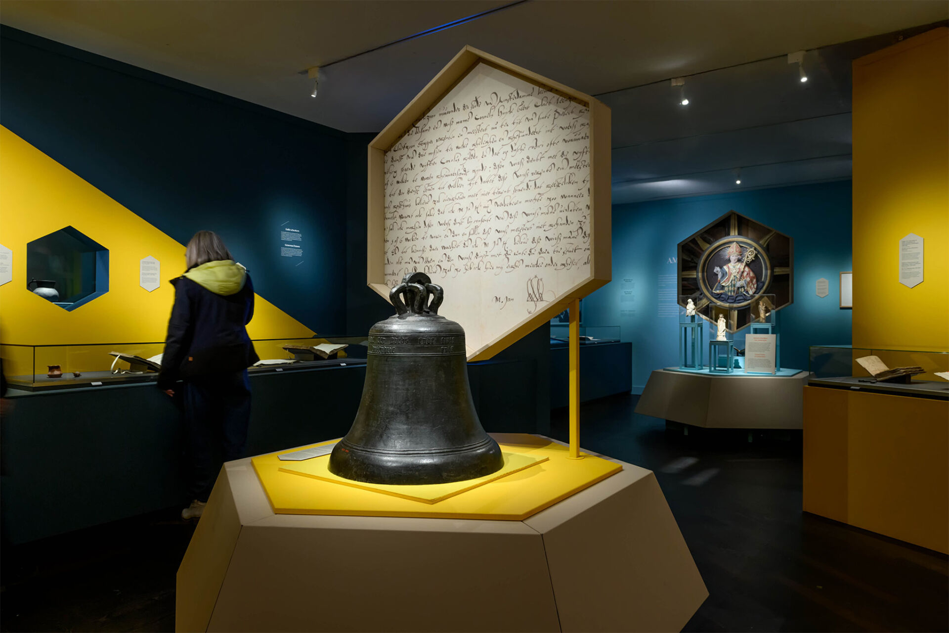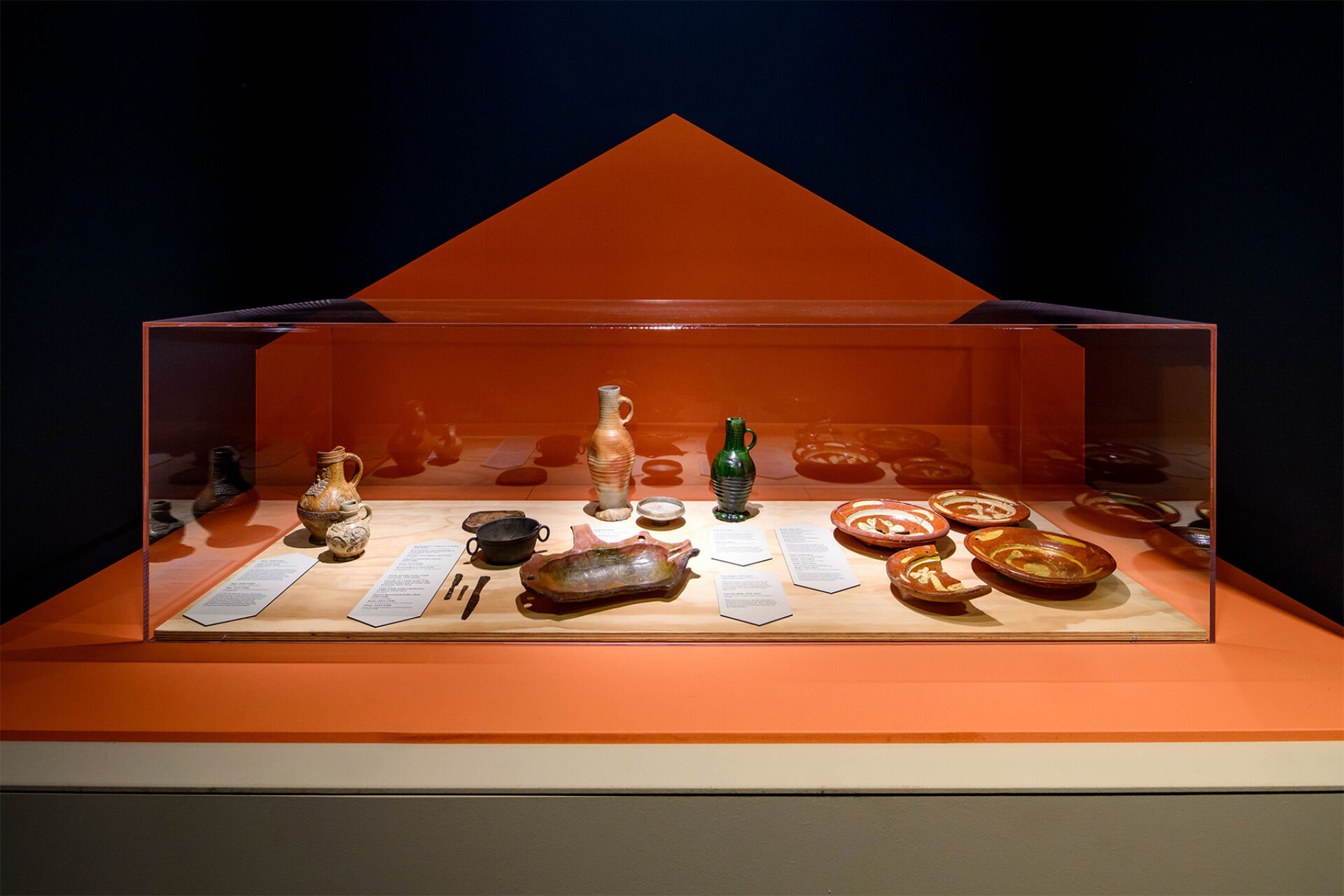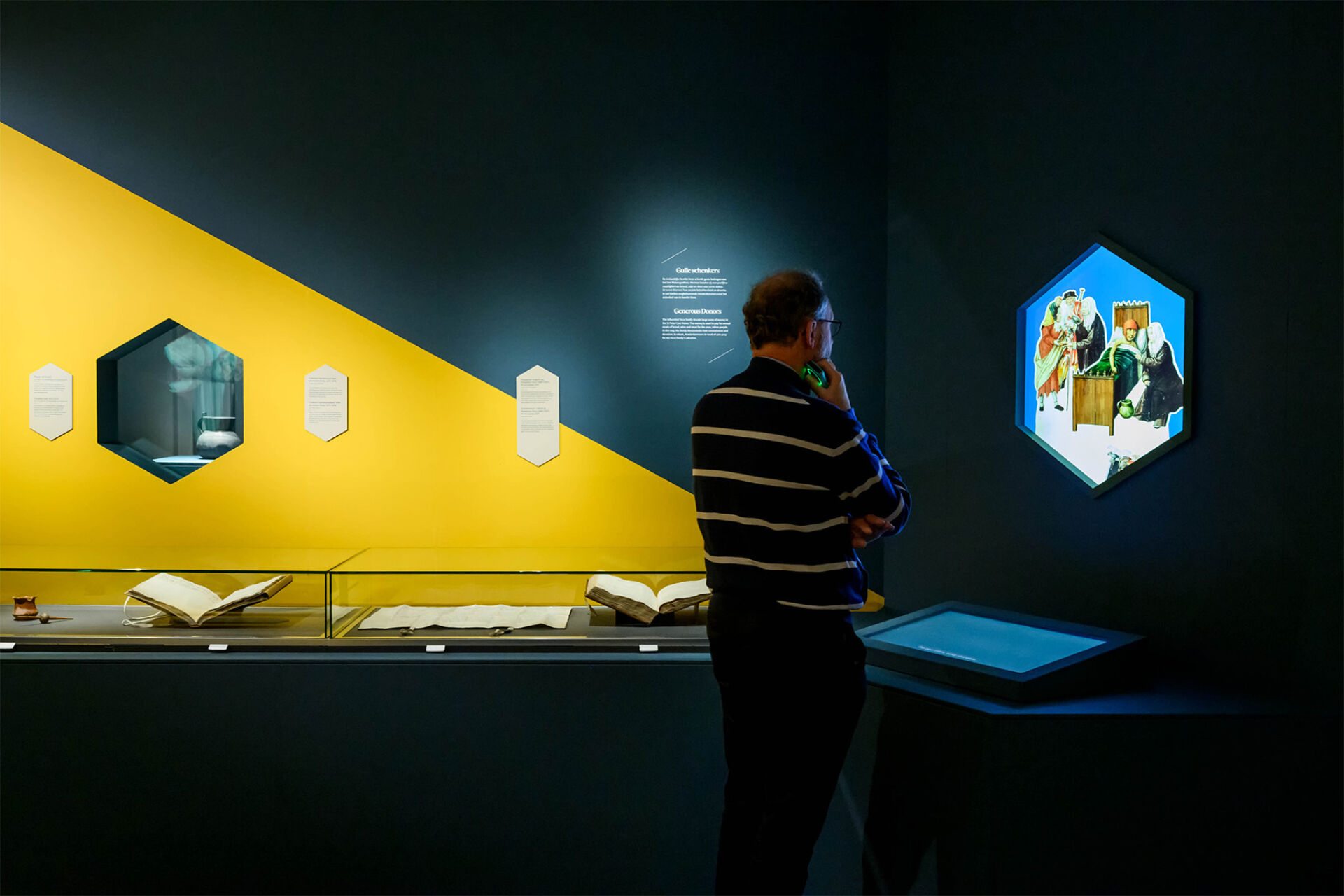 We shine a new light on the Middle Ages. Throughout the space, you’ll find eight glowing beacons where archaeological treasures meet archival documents. Through playful animations and an audio tour, you will discover that the themes that occupied the people of Amsterdam 750 years ago have barely changed: Trade, religion, care, and safety.